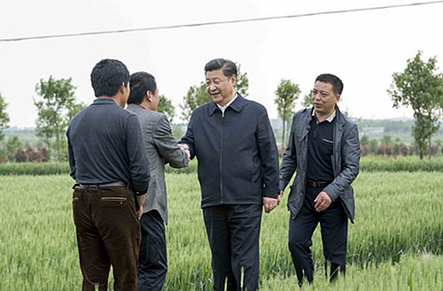 習近平在尉氏縣張市鎮(zhèn)高標準糧田察看小麥長勢。(圖片來源:新華視點)