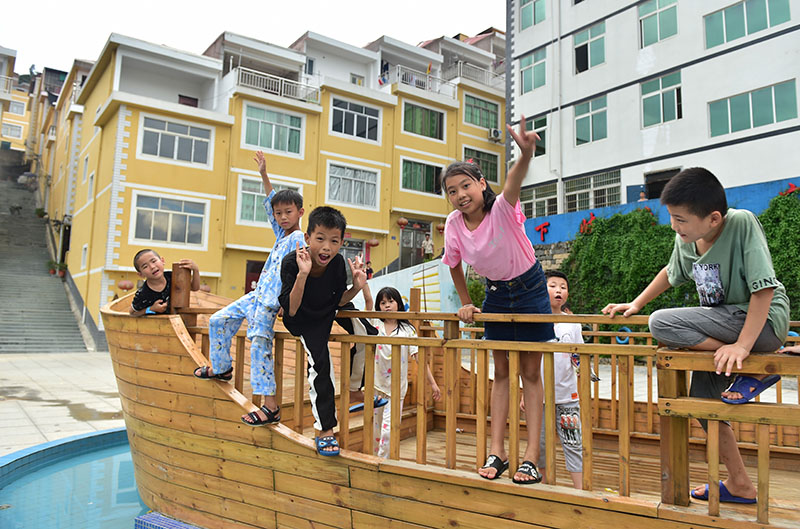 2019年8月22日,福建省福安市下岐村小朋友在下岐漁民廣場(chǎng)前玩耍。新華社記者 林善傳 攝