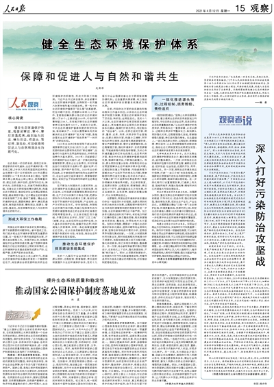 人民日?qǐng)?bào)整版探討:健全生態(tài)環(huán)境保護(hù)體系