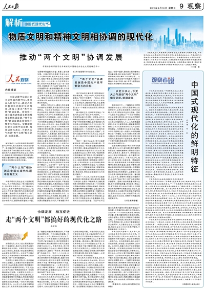 人民日?qǐng)?bào)整版闡釋:物質(zhì)文明和精神文明相協(xié)調(diào)的現(xiàn)代化