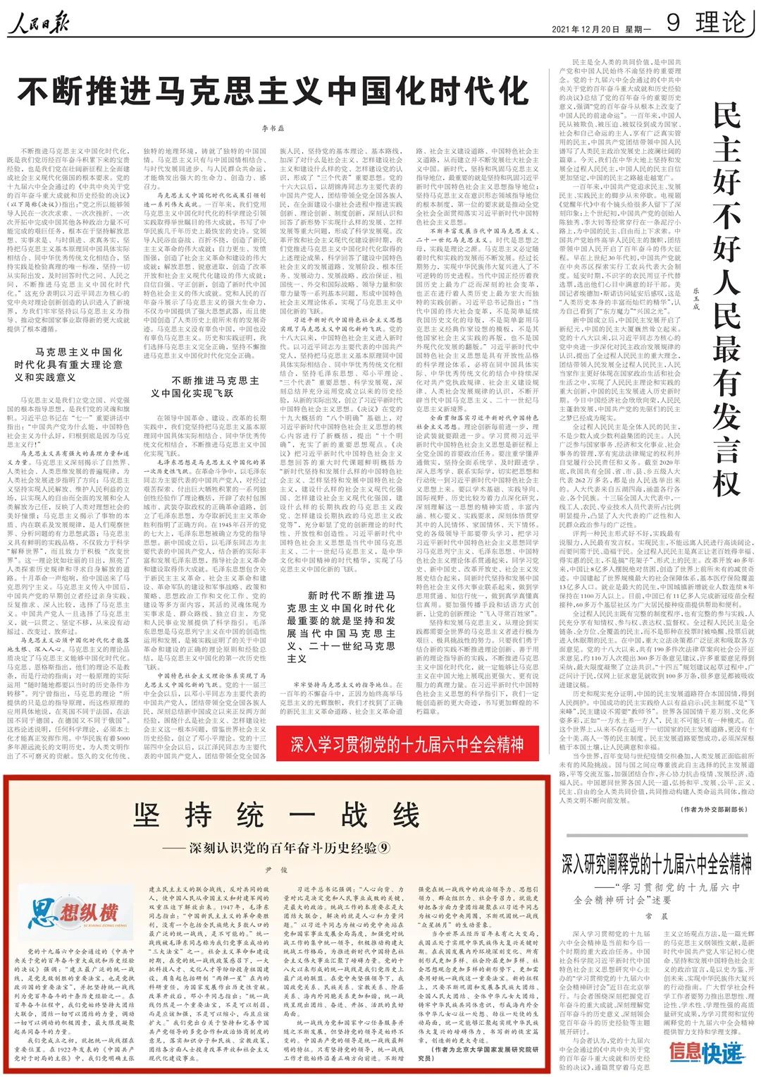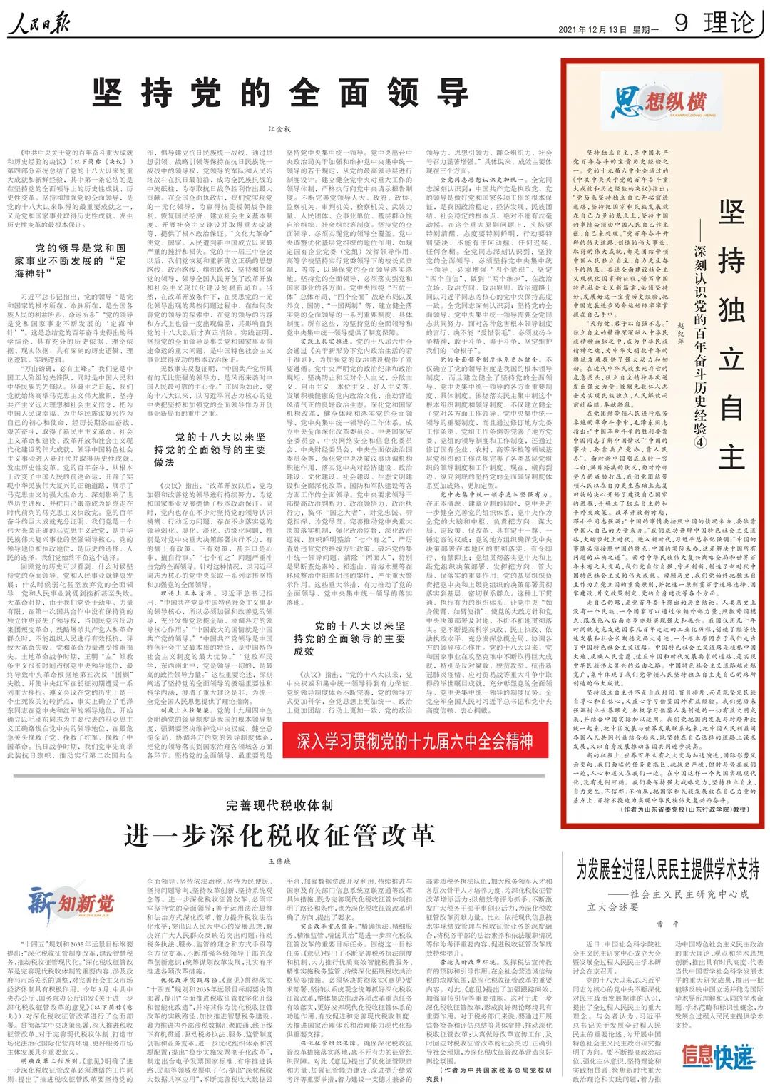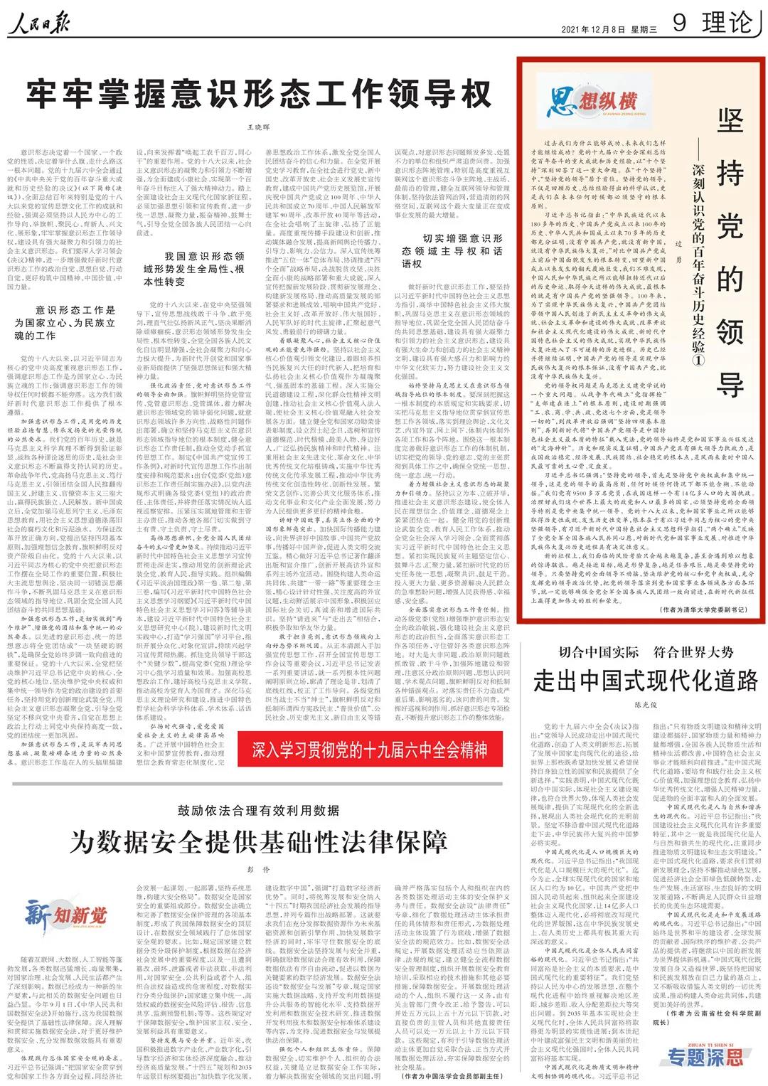 為幫助廣大讀者深刻認識黨的百年奮斗歷史經(jīng)驗,《人民日報》理論版“思想縱橫”欄目近日連續(xù)刊發(fā)了10篇解讀文章,我們對此進行了整理,供大家集中學習參考。