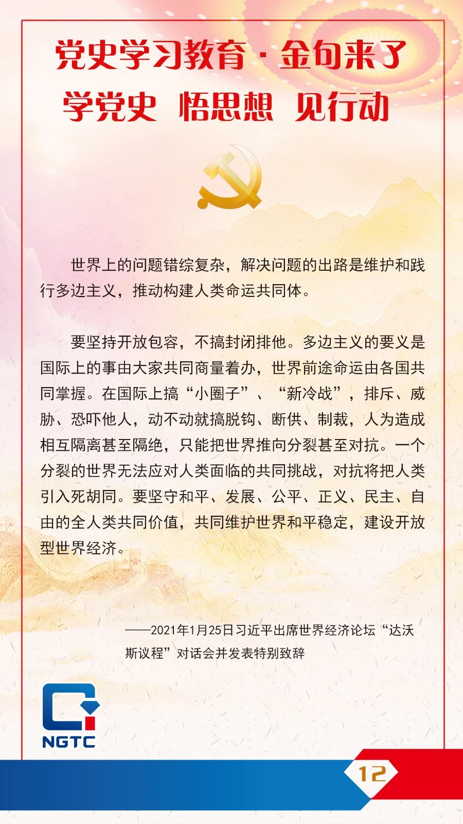 黨史學習教育·金句來了丨要堅守和平、發(fā)展、公平、正義、民主、自由的全人類共同價值
