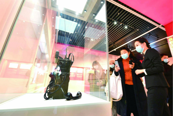 日前,“紅色電波中的領(lǐng)袖風(fēng)范——毛澤東同志香山時期發(fā)布電報手稿”專題展覽在北京香山革命紀念館舉行。圖為觀眾在觀看拍攝展出的電臺。(圖片來源:人民視覺)