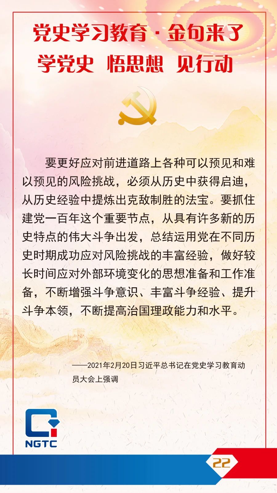 黨史學(xué)習(xí)教育·金句來(lái)了丨要更好應(yīng)對(duì)前進(jìn)道路上各種可以預(yù)見(jiàn)和難以預(yù)見(jiàn)的風(fēng)險(xiǎn)挑戰(zhàn),必須從歷史中獲得啟迪,從歷史經(jīng)驗(yàn)中提煉出克敵制勝的法寶