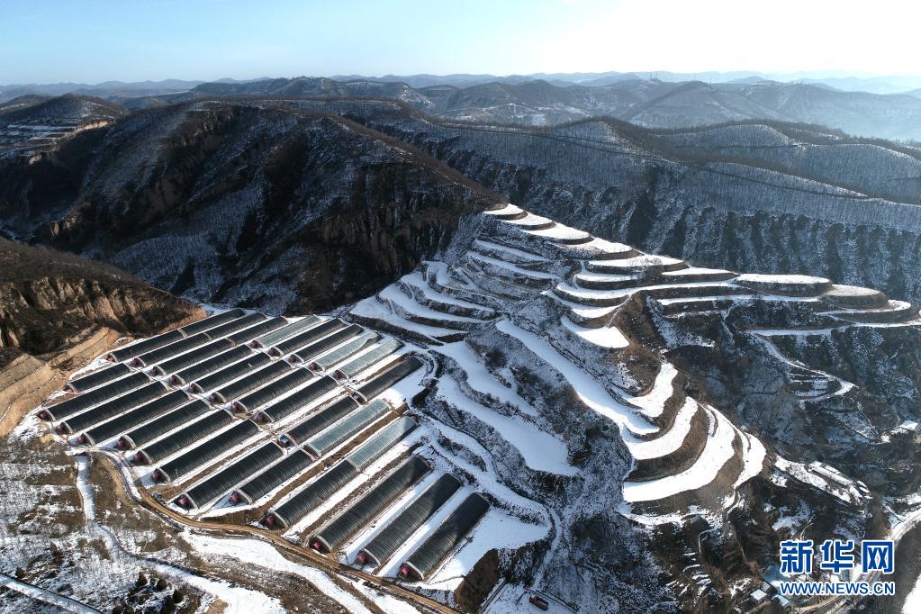 這是2020年1月20日拍攝的延安市寶塔區(qū)青化砭鎮(zhèn)梁村溫室大棚(無人機照片)。新華社記者 張博文 攝