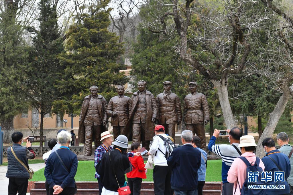 2021年3月28日,參觀者在陜西延安楊家?guī)X革命舊址參觀。新華社記者 張博文 攝