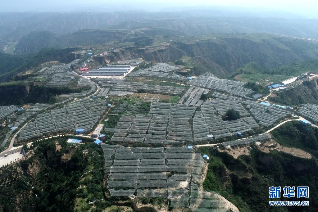 2020年7月29日無人機拍攝的延安市延川縣梁家河村山地蘋果園(無人機照片)。新華社記者 張博文 攝