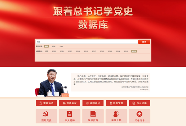 同時,數(shù)據(jù)庫設(shè)置了“百年黨史”“偉大精神”“學習教育”“英雄人物”“紅色傳承”等專欄,方便廣大網(wǎng)友系統(tǒng)學習。