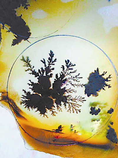 黃龍玉草花料豐富的色彩、美麗的圖案和深遠的意境,是怎么形成的呢?肖養(yǎng)杰告訴記者,初期大家都以為是真正的水草鉗入了礦物層,經過億萬年的地質變化,與這些礦物融為了一體。直到后來,礦物學家介入后,業(yè)界才知道這是一個誤會。