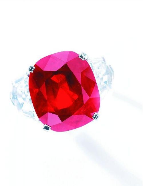 緬甸紅寶石的天然結(jié)晶小,因而很難有大克拉產(chǎn)出,3克拉起步的緬甸鴿血紅就可步入收藏級了,5克拉以上的緬甸鴿血紅已是非常罕見。近10年來,隨著緬甸礦源逐漸挖掘殆盡,收藏級別的大克拉紅寶石在拍場上的克拉成交單價可與頂級彩鉆相媲美。在2015年春拍中,蘇富比推出的一顆25.59克拉緬甸紅寶石,在日內(nèi)瓦以3052萬美元(約合人民幣1.88億元)的價格成交,刷新了紅寶石的世界拍賣紀(jì)錄。而到了秋季拍賣時,一枚緬甸“鴿血紅”紅寶石在香港佳士得拍場亮相,最終以1.42億港元成交,刷新了紅寶石單克拉的世界拍賣紀(jì)錄。