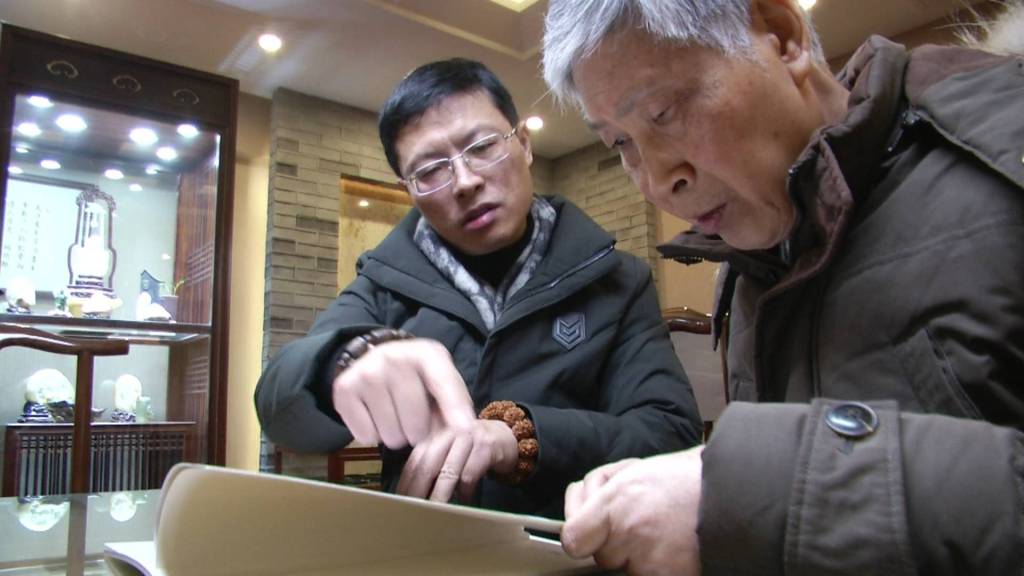 顧永駿,中國(guó)工藝美術(shù)大師,國(guó)家級(jí)非物質(zhì)文化遺產(chǎn)揚(yáng)州玉雕代表性傳承人,被譽(yù)為“中國(guó)山子雕第一人”。年近八旬的顧老已經(jīng)很少再親自動(dòng)手,兒子顧銘繼承了他的衣缽。在顧老看來(lái),兒子構(gòu)思方法比較前衛(wèi)。比如說(shuō)名叫“最遙遠(yuǎn)的距離”的玉雕作品,是顧銘在2017年創(chuàng)作完成的。背對(duì)背的男孩和女孩,拿著手機(jī),低著頭,雖然靠在一起,卻沒(méi)有交流。創(chuàng)作的時(shí)候,顧銘并沒(méi)有考慮到它的商業(yè)價(jià)值,只是單純地想反映一種社會(huì)現(xiàn)象。