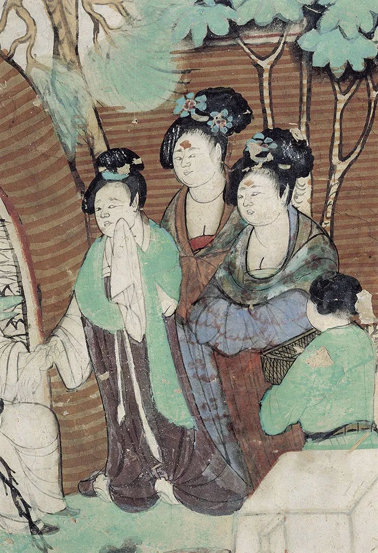 都督夫人禮佛圖局部之戴花的女眷(臨摹品)莫高窟第130窟盛唐