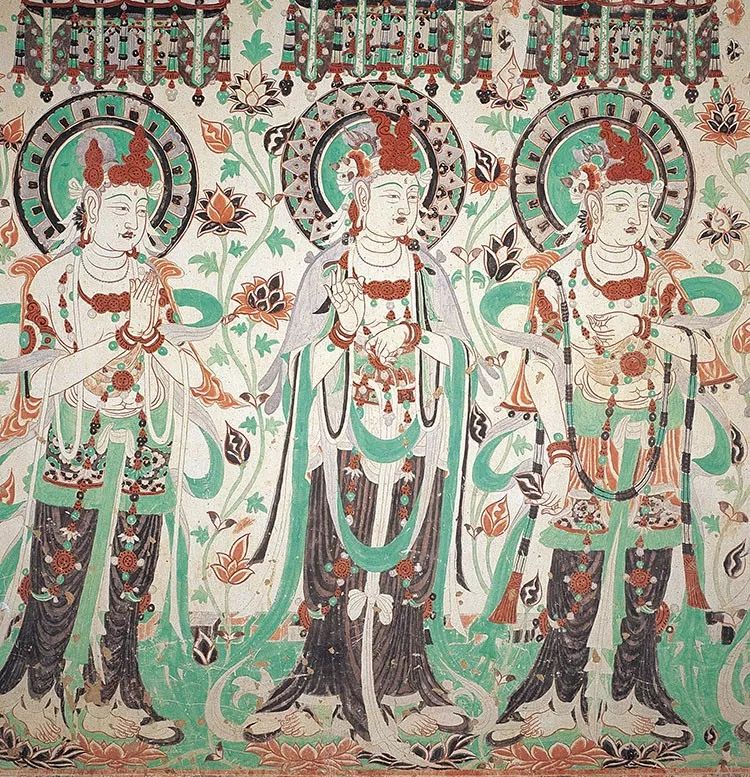 莫高窟壁畫中的人兒“虹裳霞帔步搖冠,鈿瓔累累佩珊珊”,跨越千年,依舊華美。
