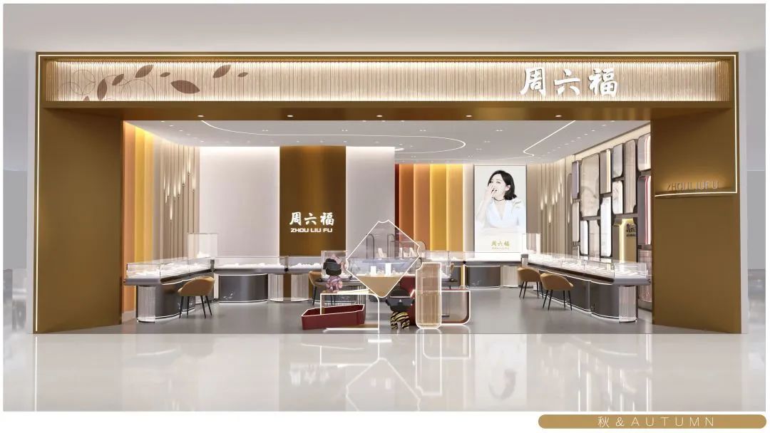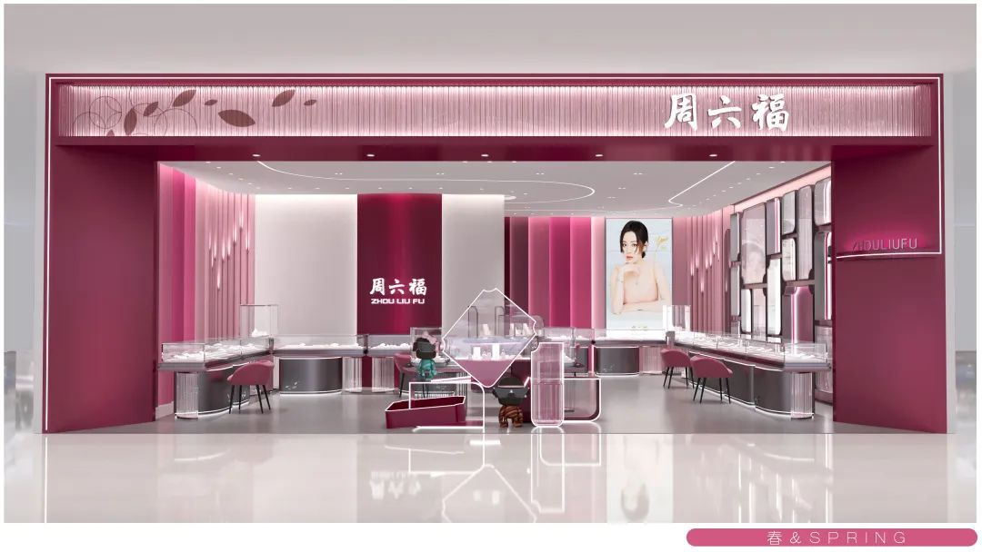 在終端門店形象方面,周六福緊跟時(shí)代審美趨勢,不斷在原有造型元素上進(jìn)行延展與探索,打造出周六福全新五代形象,以“春夏秋冬”四季作為設(shè)計(jì)理念,提煉出四種不同的主題色調(diào),通過不同色系、光影、元素的巧妙搭配,力求在色調(diào)中為大家構(gòu)建年輕、時(shí)尚的空間感受。四種不同的門店形象如四季一般,個(gè)性鮮明卻又相互關(guān)聯(lián)。周六福打破傳統(tǒng)的單一形象,更好地匹配不同環(huán)境,以更和諧、更獨(dú)特的姿態(tài)融入各大商場平臺,為消費(fèi)者帶來煥然一新的視覺享受與購物體驗(yàn)。