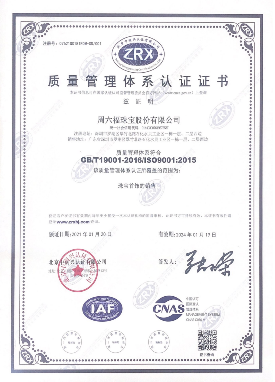 周六福始終視產(chǎn)品質(zhì)量為企業(yè)品牌的生命線,以用戶需求為導(dǎo)向,堅(jiān)持“每一件產(chǎn)品都是精品”的品質(zhì)理念及工匠精神,設(shè)立專業(yè)的裸石部門、產(chǎn)品研發(fā)部門、編貨部門及品質(zhì)管理部門等,構(gòu)筑起完善的質(zhì)量管理體系。從原料采購、設(shè)計(jì)制造到品牌營銷,周六福力求每一件送達(dá)消費(fèi)者手里的產(chǎn)品都是高品質(zhì)精品。