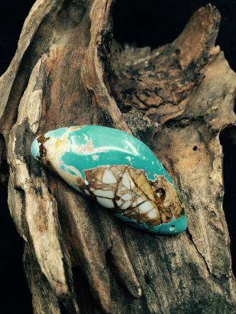 羅伊斯頓礦區(qū)位于美國內(nèi)華達(dá)州托諾帕地區(qū),方圓數(shù)英里包含許多綠松石礦點。羅伊斯頓綠松石以其漂亮的顏色聞名,其顏色涵蓋深綠色到濃郁的藍(lán)色,圍巖呈深褐色或金褐色。羅伊斯頓綠松石的顏色變化較大,藍(lán)色調(diào)和綠色調(diào)可以出現(xiàn)在同一塊綠松石樣品中,這是它聞名于世的另一個原因。