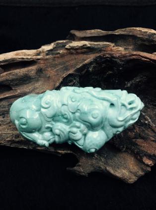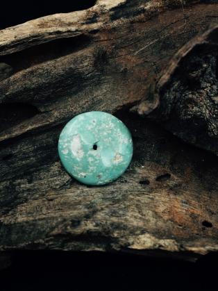 美國藍(lán)月亮綠松石,迷人的淡藍(lán)色令人愛不釋手,外觀極像湖北綠松石,部分具有銀灰色的鐵線,可以與湖北綠松石區(qū)別。