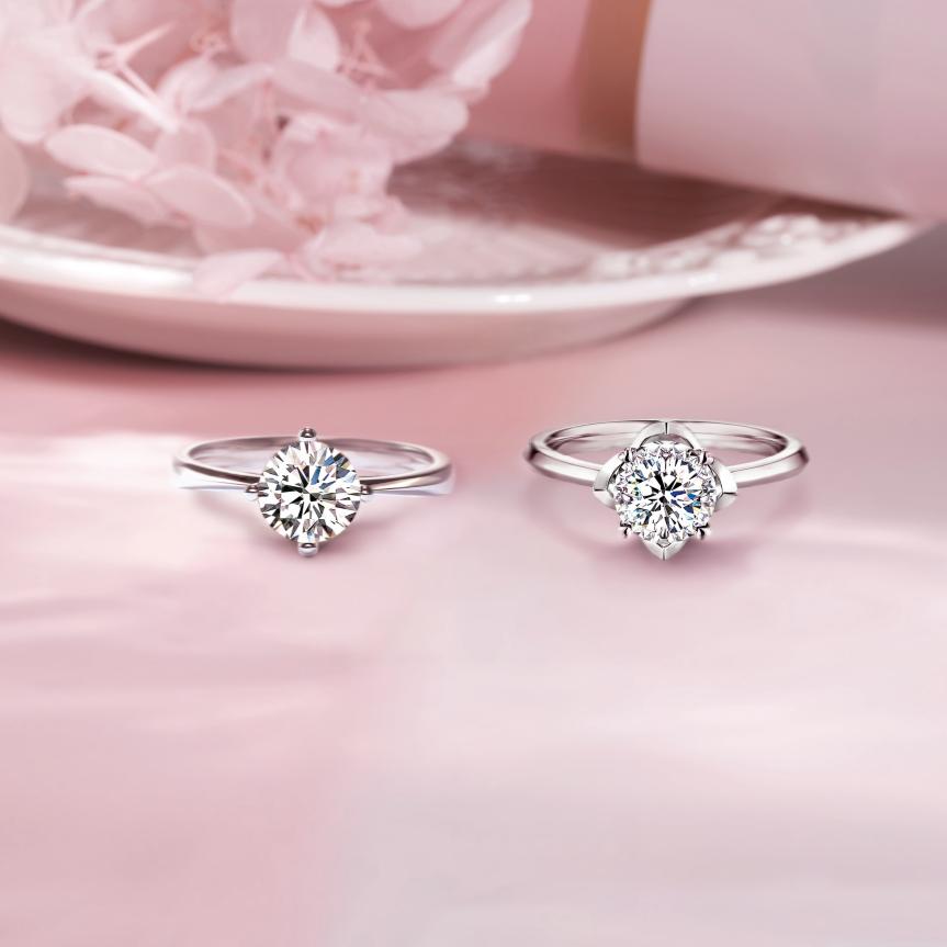 爪鑲工藝是用較長的金屬爪(或金屬柱)緊緊扣住寶石的鑲嵌方法。在當代首飾中,爪鑲在鑲嵌顆粒較大的鉆石時較為常用,因為它遮住寶石的面積很小,能最大化使光線通過寶石,從而最大程度地體現(xiàn)寶石的光學性質(zhì),讓寶石看上去晶瑩剔透、璀璨奪目。