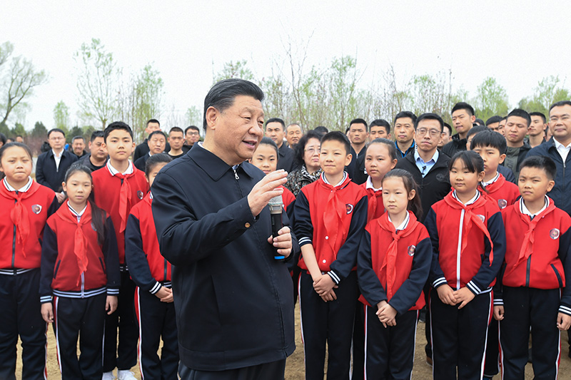 習(xí)近平強調(diào),美麗中國建設(shè)離不開每一個人的努力。美麗中國就是要使祖國大好河山都健康,使中華民族世世代代都健康。要深入開展好全民義務(wù)植樹,堅持全國動員、全民動手、全社會共同參與,加強組織發(fā)動,創(chuàng)新工作機制,強化宣傳教育,進一步激發(fā)全社會參與義務(wù)植樹的積極性和主動性。廣大黨員、干部要帶頭履行植樹義務(wù),踐行綠色低碳生活方式,呵護好我們的地球家園,守護好祖國的綠水青山,讓人民過上高品質(zhì)生活。