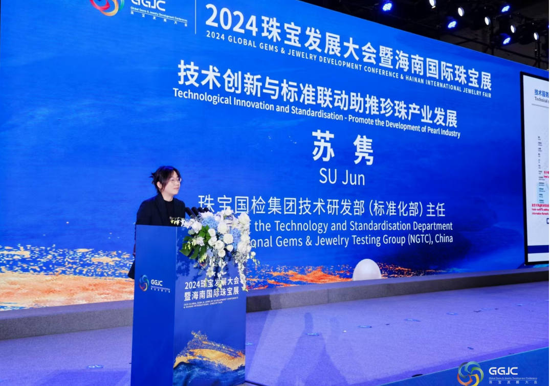 12月19日,2024珍珠產(chǎn)業(yè)發(fā)展大會圓滿舉行,會議探討了全球珍珠產(chǎn)業(yè)發(fā)展關(guān)注話題,分析全球珍珠行業(yè)趨勢,展現(xiàn)珍珠行業(yè)科技發(fā)展、品牌建設(shè)新風(fēng)貌,以創(chuàng)新與科技推動珍珠產(chǎn)業(yè)高質(zhì)量發(fā)展。珠寶國檢集團(tuán)技術(shù)研發(fā)部(標(biāo)準(zhǔn)化部)主任蘇雋在會上做了題為《技術(shù)創(chuàng)新與標(biāo)準(zhǔn)聯(lián)動助推珍珠產(chǎn)業(yè)發(fā)展》的主旨演講。她分享了珠寶國檢集團(tuán)珍珠研究的前沿科技成果,剖析了檢測難點(diǎn)問題,介紹了新版珍珠分級國家標(biāo)準(zhǔn)的修訂內(nèi)容以及珍珠商貿(mào)名稱使用規(guī)范,并提出要進(jìn)一步推動珍珠產(chǎn)業(yè)的技術(shù)創(chuàng)新與標(biāo)準(zhǔn)互動發(fā)展。