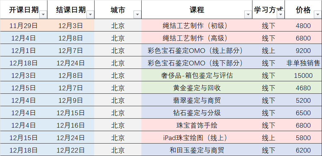 【開課計劃】2023年12月全國課程計劃