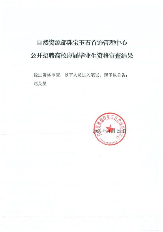自然資源部珠寶玉石首飾管理中心公開招聘高校應(yīng)屆畢業(yè)生資格審查結(jié)果