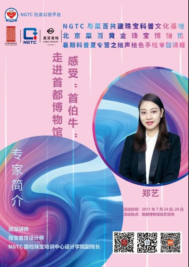 活動由首博、NGTC與菜百共建珠寶科普文化基地共同策劃?;顒友埵撞<医榻B首博2021年文化IP——首伯牛的歷史文化淵源,并由珠寶國檢(NGTC)教育專家——NGTC國檢珠寶培訓(xùn)中心設(shè)計學(xué)院副院長鄭藝以“首伯?!睘樵O(shè)計元素,讓青少年了解珠寶首飾的設(shè)計、繪畫技巧。