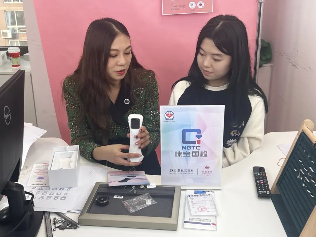 直播中,鄭藝還向大家展示了珠寶國(guó)檢鉆石鑒定和分級(jí)證書(shū),并進(jìn)行了詳細(xì)解讀。鄭藝還特別介紹到,珠寶國(guó)檢集團(tuán)研究所今年最新發(fā)布的一款可以全面、快速、準(zhǔn)確檢測(cè)鉆石首飾的手持式檢測(cè)儀器——便攜式鉆石鑒定儀PDS I 300。此款鉆石鑒定儀的重量?jī)H160克,在消費(fèi)者、商家日常采購(gòu)、銷售以及鉆石飾品的回收時(shí)都能發(fā)揮重要作用。