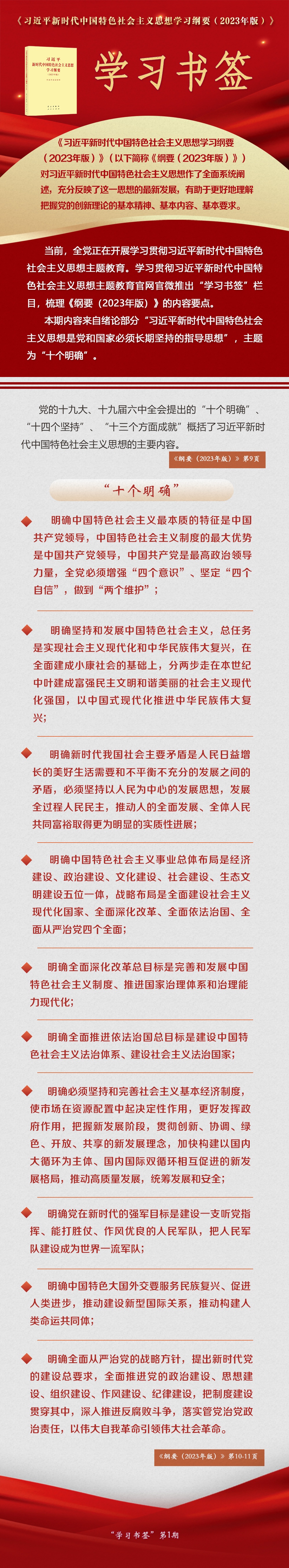 《習(xí)近平新時代中國特色社會主義思想學(xué)習(xí)綱要(2023年版)》 學(xué)習(xí)書簽丨“十個明確”