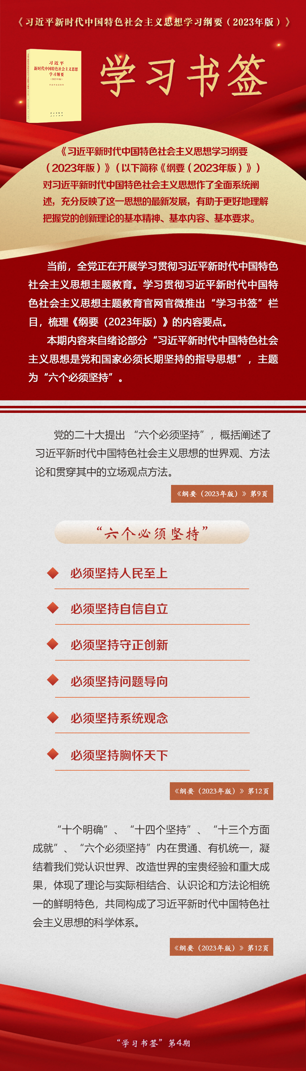 《習(xí)近平新時(shí)代中國特色社會(huì)主義思想學(xué)習(xí)綱要(2023年版)》 學(xué)習(xí)書簽丨“六個(gè)必須堅(jiān)持”
