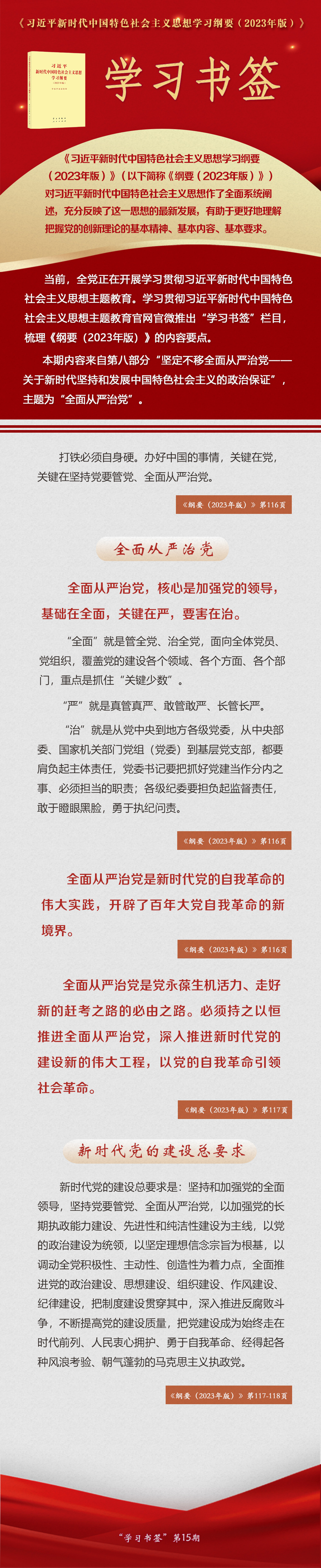 《習(xí)近平新時(shí)代中國(guó)特色社會(huì)主義思想學(xué)習(xí)綱要(2023年版)》 學(xué)習(xí)書簽丨全面從嚴(yán)治黨