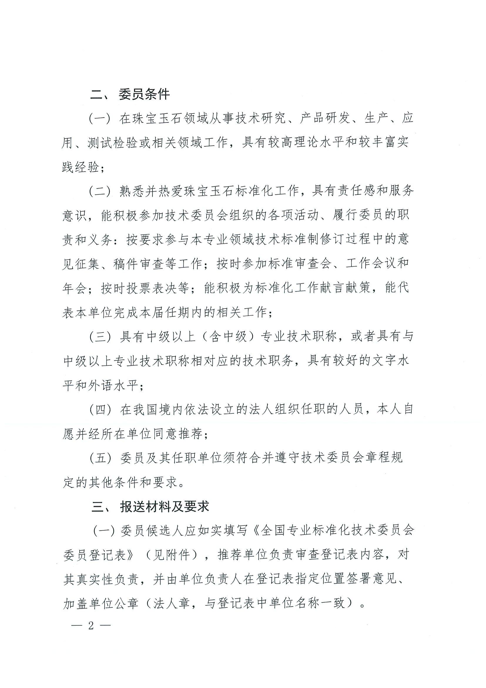 關(guān)于全國珠寶玉石標(biāo)準(zhǔn)化技術(shù)委員會換屆及征集委員的通知