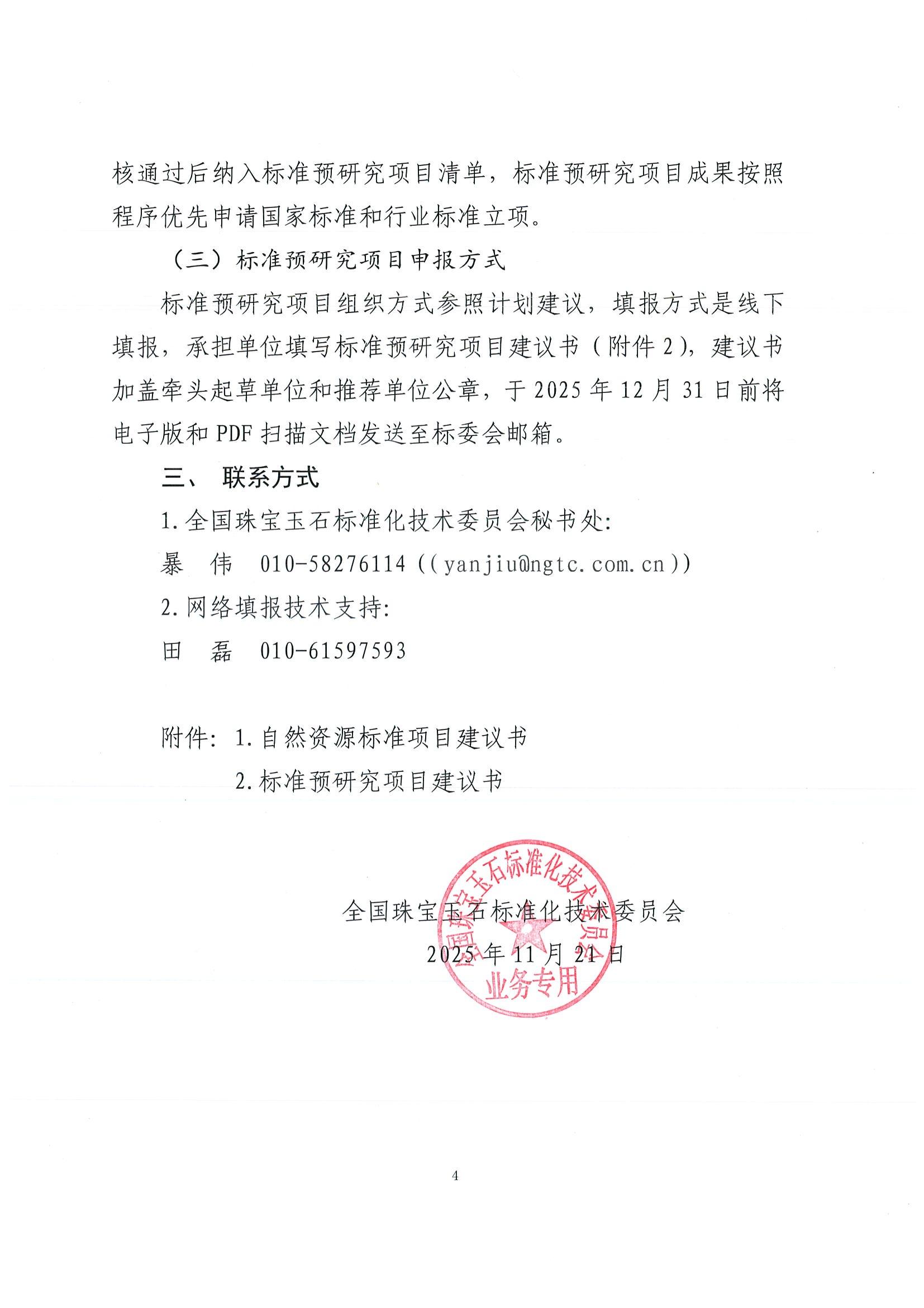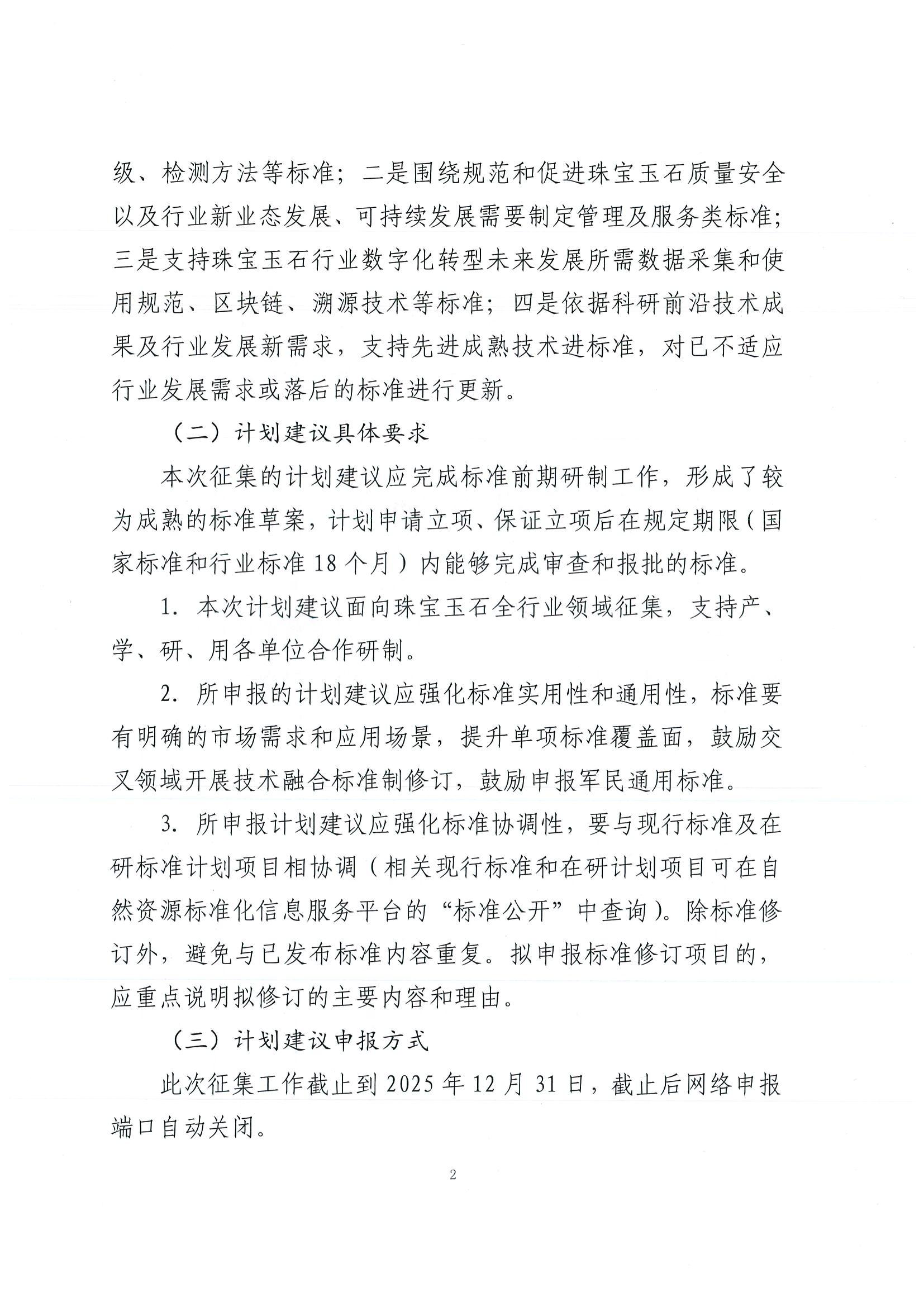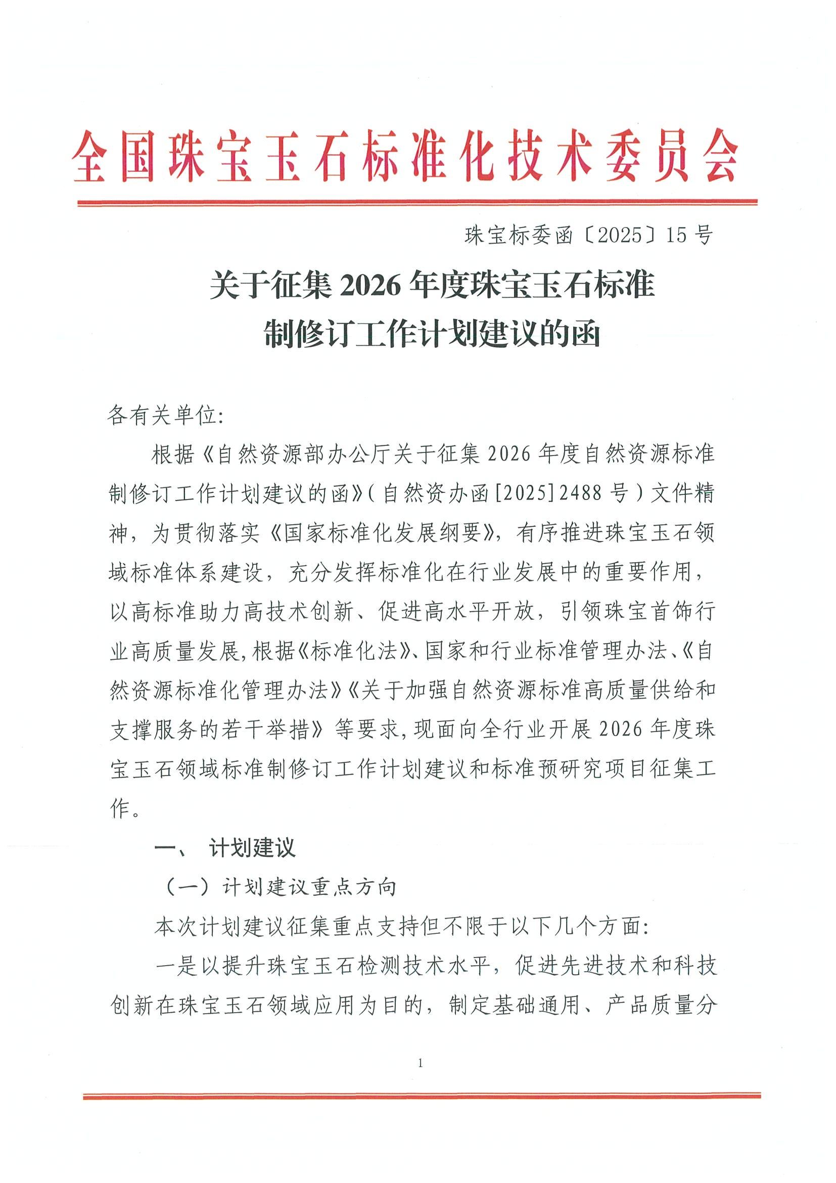 關(guān)于征集2026年度珠寶玉石標(biāo)準(zhǔn)制修訂工作計(jì)劃建議的函