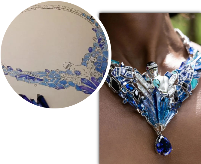 作為具有環(huán)保理念的珠寶品牌,高納仕(GAONAS)的珠寶設(shè)計(jì)制作不拘泥于材料,天然礦石不是必選項(xiàng),人工寶石亦能被打造出媲美天然寶石的視覺(jué)效果。高納仕(GAONAS)提出“環(huán)保與美麗共存”的口號(hào),希望通過(guò)此件作品呼吁大家更好地保護(hù)自然生態(tài)和不可再生資源,讓每一位自信的女性都能夠?qū)崿F(xiàn)珠寶自由。