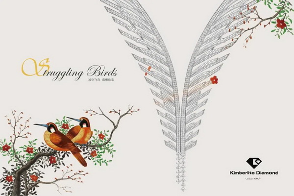 “凌空飛鳥(niǎo)”高級(jí)珠寶套系靈感源自飛鳥(niǎo)展翅的動(dòng)態(tài)瞬間,通過(guò)對(duì)鳥(niǎo)類骨架的藝術(shù)化處理,彰顯騰飛的生命活力。作品采用雙層結(jié)構(gòu)設(shè)計(jì),勾勒翅膀的細(xì)密輪廓,鑲嵌璀璨生輝的美鉆,以精湛工藝展現(xiàn)鳥(niǎo)兒的高雅姿態(tài),傳遞無(wú)拘無(wú)束、自由翱翔的美好愿景。生動(dòng)靈性的鳥(niǎo)兒展示了珠寶與自然的結(jié)合,豐富地表現(xiàn)出了藝術(shù)與珠寶設(shè)計(jì)融合的巧思。而展翅翱翔的鳥(niǎo)兒掙脫萬(wàn)有引力的束縛,也體現(xiàn)了大自然的靈動(dòng)和自由之美。