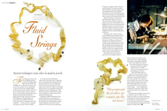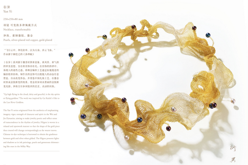《衍異》系列作品有很多簡(jiǎn)約的線條,跟珍珠的結(jié)合也非常巧妙,很多外國(guó)朋友也特別喜歡。瑞士前任大使夫人在參加“一帶一路”倡議相關(guān)活動(dòng)時(shí),特別佩戴了這樣的珍珠項(xiàng)飾,她認(rèn)為這款項(xiàng)飾既具有中國(guó)風(fēng)格,又具有很好的現(xiàn)代性、世界性。